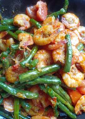Tumis udang kacang panjang pedas nikmat.